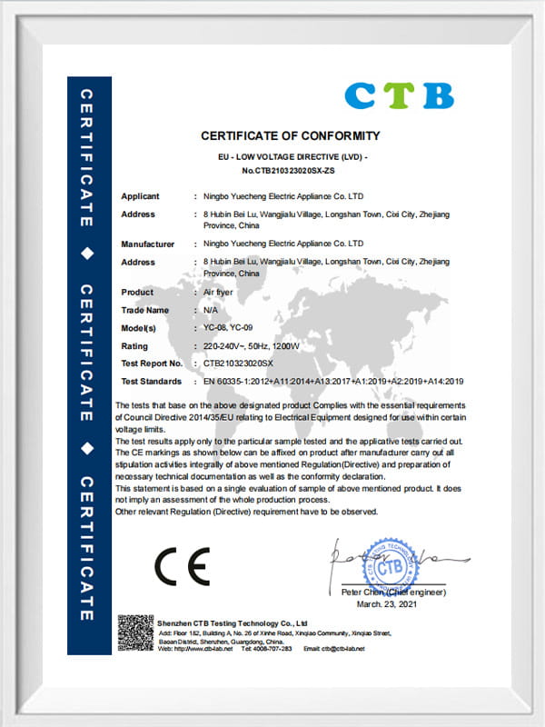 인증- Ningbo Yuecheng Electric Co., Ltd.